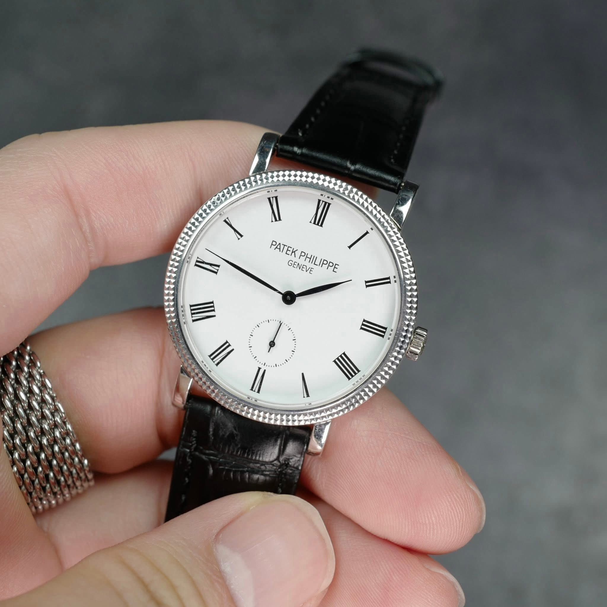 ÆÄÅØÇʸ³ Ä®¶óÆ®¶ó¹Ù ½Ç¹ö º£Á© È­ÀÌÆ® ´ÙÀ̾ó ¿ÀÅä¸Åƽ pat0225- Patek Philippe Calatrava Sliver Bezel White Dial Automatic