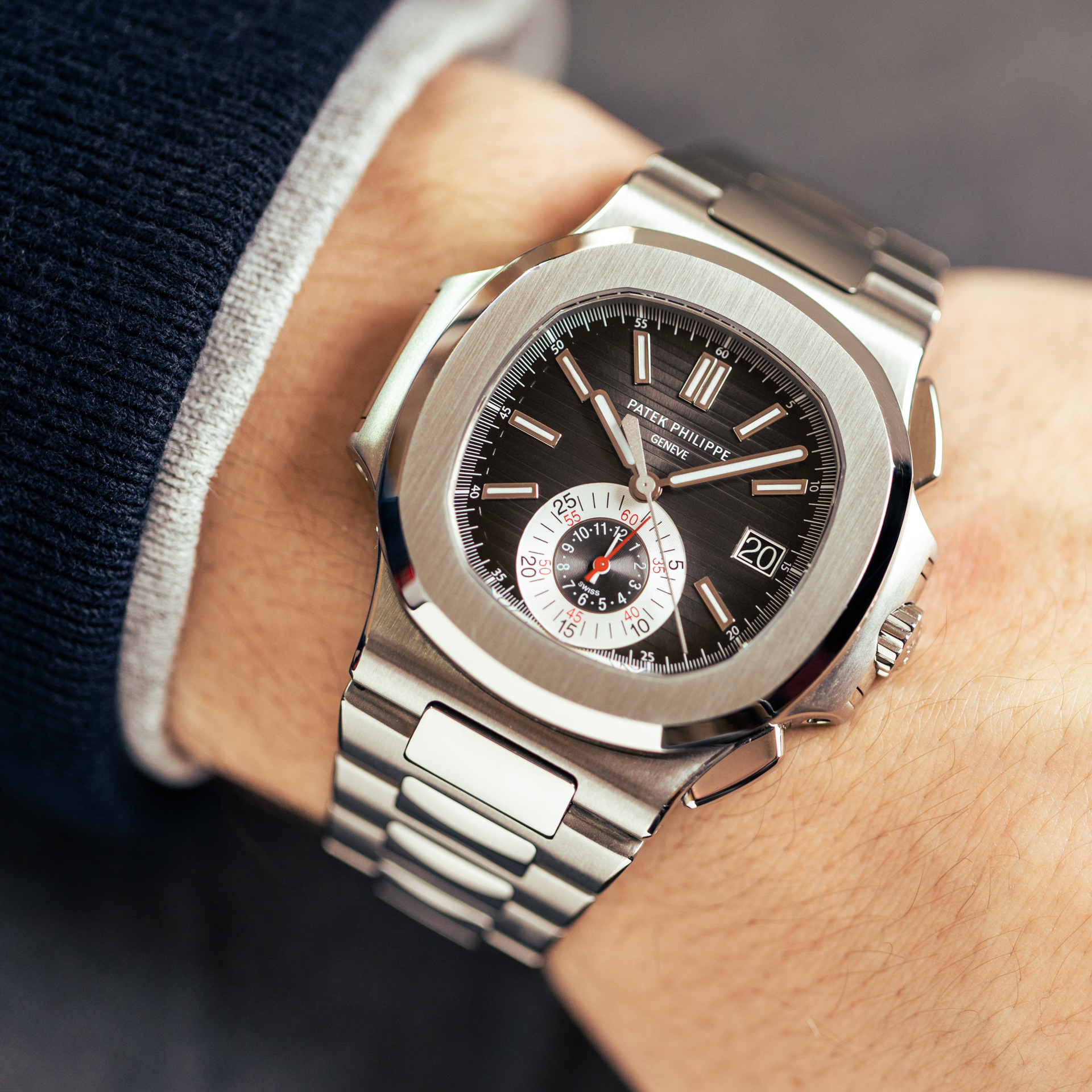Á¦Ç°¸í [ÆÄÅØÇʸ³] ÃֽŻóǰ ³ëÆ¿·¯½º Å©·Î³ë±×·¡ÇÁ °ËÁ¤´ÙÀ̾ó pat0233 - Patek Philippe Nautilus Chronograph Steel