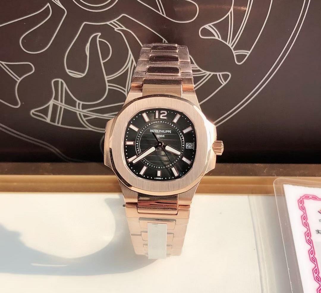 [ÆÄÅØÇʸ³]³ëÆ¿·¯½º 7010/1R-010 ÇÏÀÌ¿£µå ÃÖ°í±ÞÇü ¿©¼º¿ë 18k ·ÎÁî°ñµå ºí·¢ ÅØ½ºÃÄ ´ÙÀ̾ó ºê·¹À̽½¸´ ½ºÀ§½º Á¤Ç° ÄõÃ÷ ¹«ºê¸ÕÆ® pat0344 - Patek Philippe Nautilus Jumbo TOP Grade Quality Ladies Watch 18k Rose Gold Black Texture Dial Bracelet Swiss ETA Quartz Movement