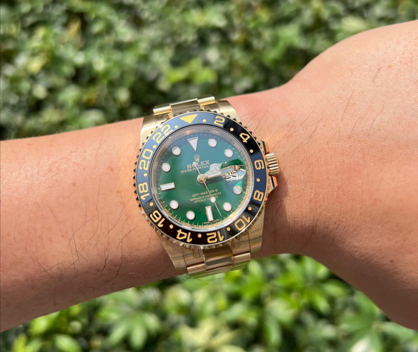 [·Î·º½º] Áö¿¥Æ¼ ¸¶½ºÅÍII BEST ¸ðµ¨ ½ÅÇü¹öÁ¯ °í±Þ½º·¯¿î 18K ¿»·Î¿ì°ñµå ÄÉÀ̽º ¼¼¶ó¹Í º£Á© ½ã´õ½ºÆ® ±×¸° ´ÙÀ̾ó ¿ÀÀ̽ºÅÍ ºê·¹À̽½¸´ ¿ÀÅä¸Åƽ ¹«ºê¸ÕÆ® rol0763 - Rolex GMT-MasterII Root Beer Oyster, flat three-piece links Ceramics Bezel 18K Yellow Gold Sun Dust Green Dial Oyster Bracelet Automatic Movement