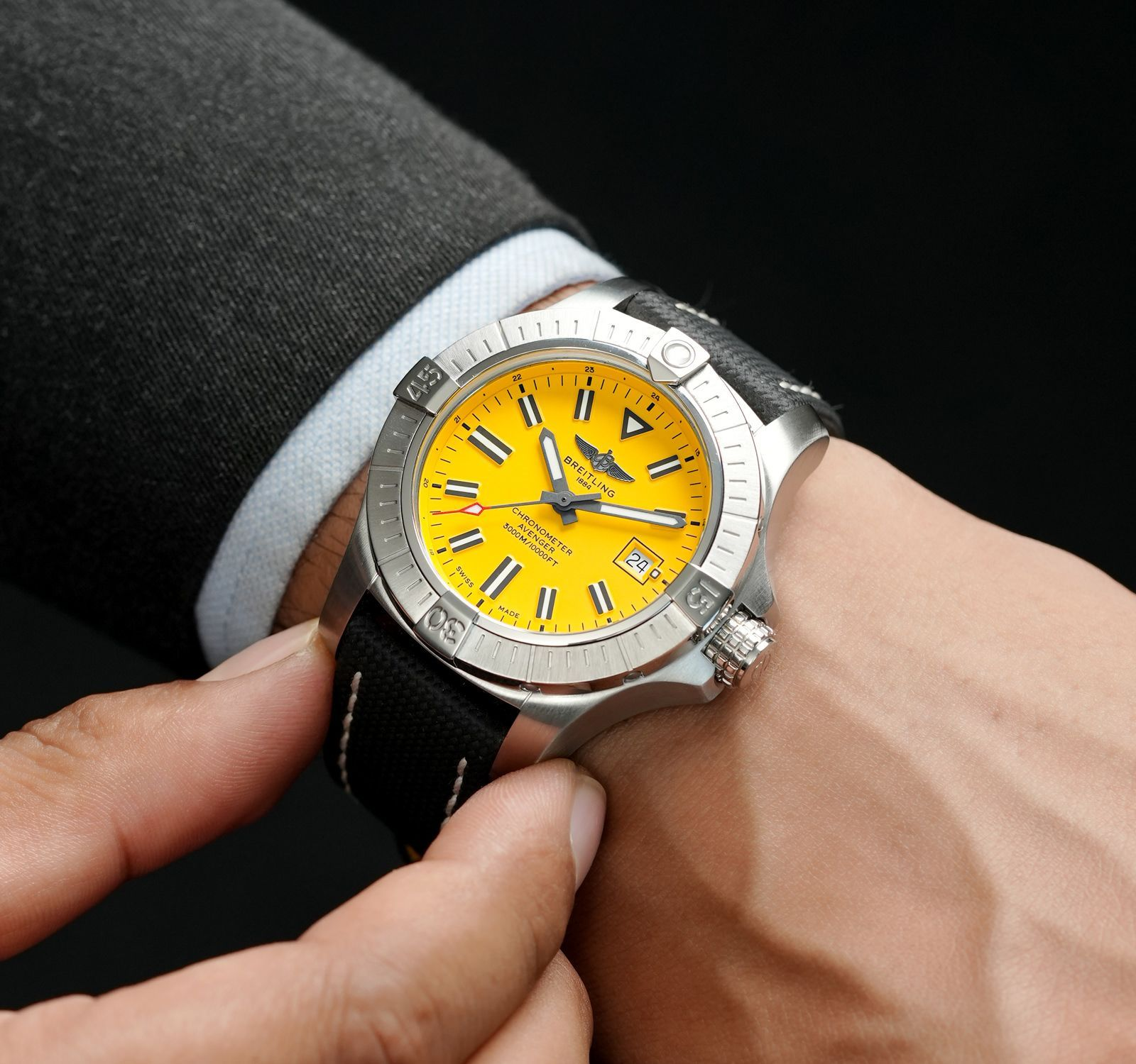 [ºê¶óÀÌÆ²¸µ] A17318101B1A1 ¾îº¥Åß ETA 2824-2 ŸÀÔ ³²¼º¿ë 44mm ¸ÞÅ»½Ã°è ºí·ç´ÙÀ̾ó bre0764 - Breitling Avenger Automatic Movement 43mm Mens Yellow Dial