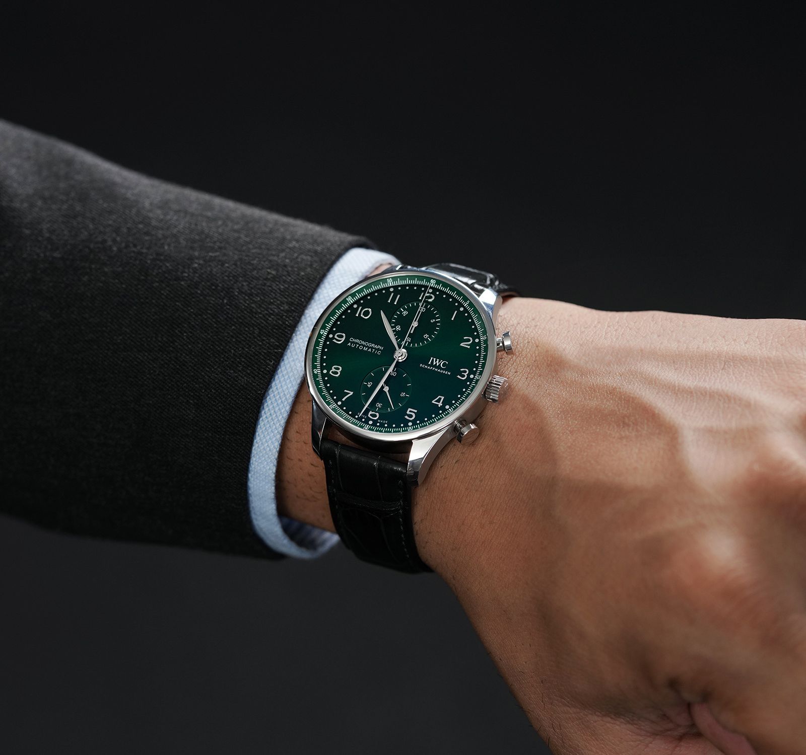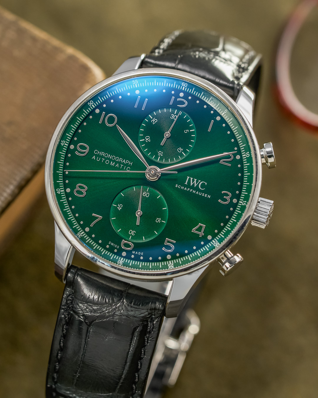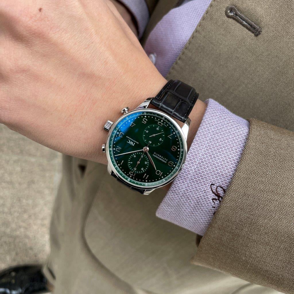 [¾ÆÀÌ´õºíÀ¯¾¾] Æ÷¸£Åõ±âÁî ±×¸° Å©·Î³ë±×·¡ÇÁ ½ºÆ¿ 41¹Ì¸® ³²¼º¿ë½Ã°è ±×¸°´ÙÀ̾ó iwc0432 - IWC Portuguese Portugieser Steel 41mm IW371615 Green Chronograph Watch Mens Green Dial