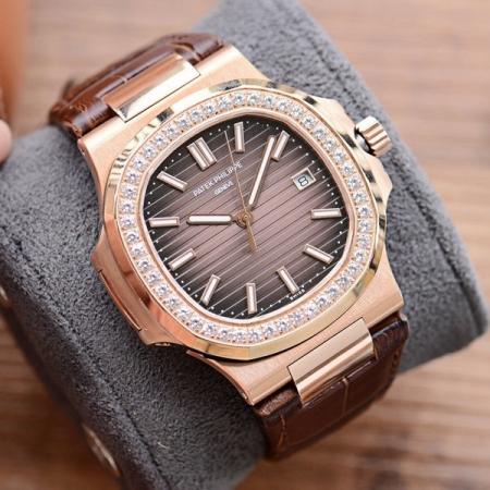 Á¦Ç°¸í [ÆÄÅØÇʸ³] ³ëÆ¿·¯½º 40¹Ì¸® 18K·ÎÁî°ñµå ³²¼º¿ë ±ÝÀå½Ã°è º¸¼®/Å¥ºò ¼¼ÆÃ ¿ÀÅä¸Åƽ ±×·¹ÀÌ´ÙÀ̾ó pat0497 - Patek Philippe Nautilus Mens 40mm Diamond Set 18K RoseGold Automatic Grey Dial