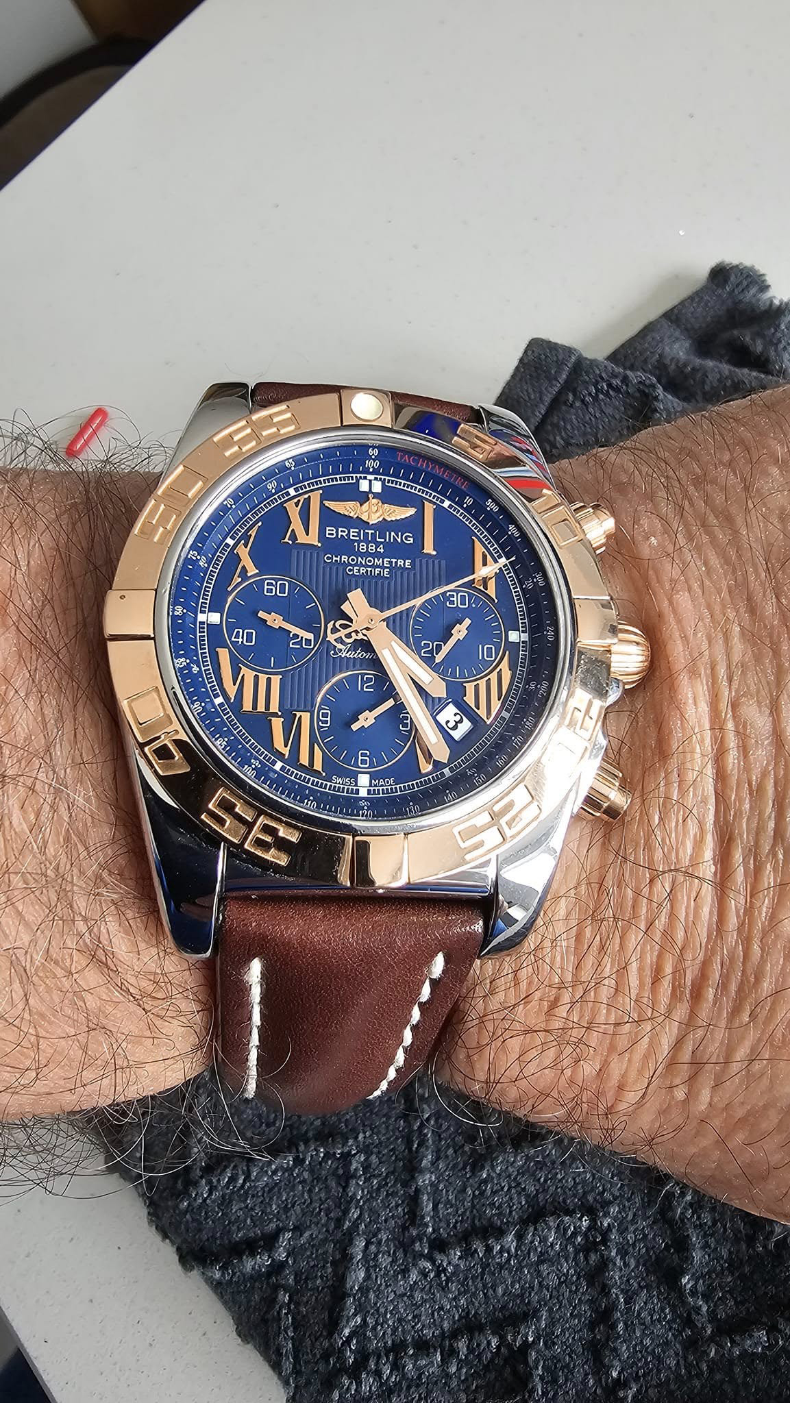 [ºê¶óÀÌÆ²¸µ] ¿øµå¶óÀÌ´õ Å©·Î³ë¸Ë ¿ÀÅä¸Åƽ ETA-7750 ±â°è½Ä 44mm ³²¼º¿ë½Ã°è 18K ·ÎÁî°ñµå °¡Á×ÁÙ ºí·ç´ÙÀ̾ó bre0619 - Breitling Windrider Chornomat ETA7750 TYPE 44mm Rose Gold Mens Blue Dial