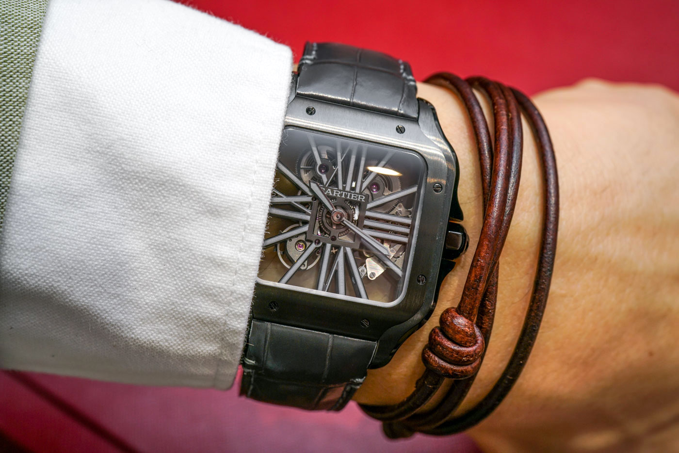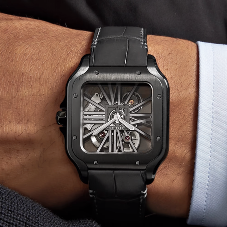 [±î¸£¶ì¿¡] Á¤Ç°±Þ ǰÁú WHSA0009 »êÅ佺 ¶óÁö ¼öµ¿±â°è½Ä 72 ÆÄ¿ö¸®Á®ºê 40mm ³²¼º¿ë½Ã°è DLC ½ºÄÌ·¹Åæ ºí·¢´ÙÀ̾ó car1259 - Cartier Santos Large Steel Hand 9611MC DLC Black Skeleton Dial WHSA0009