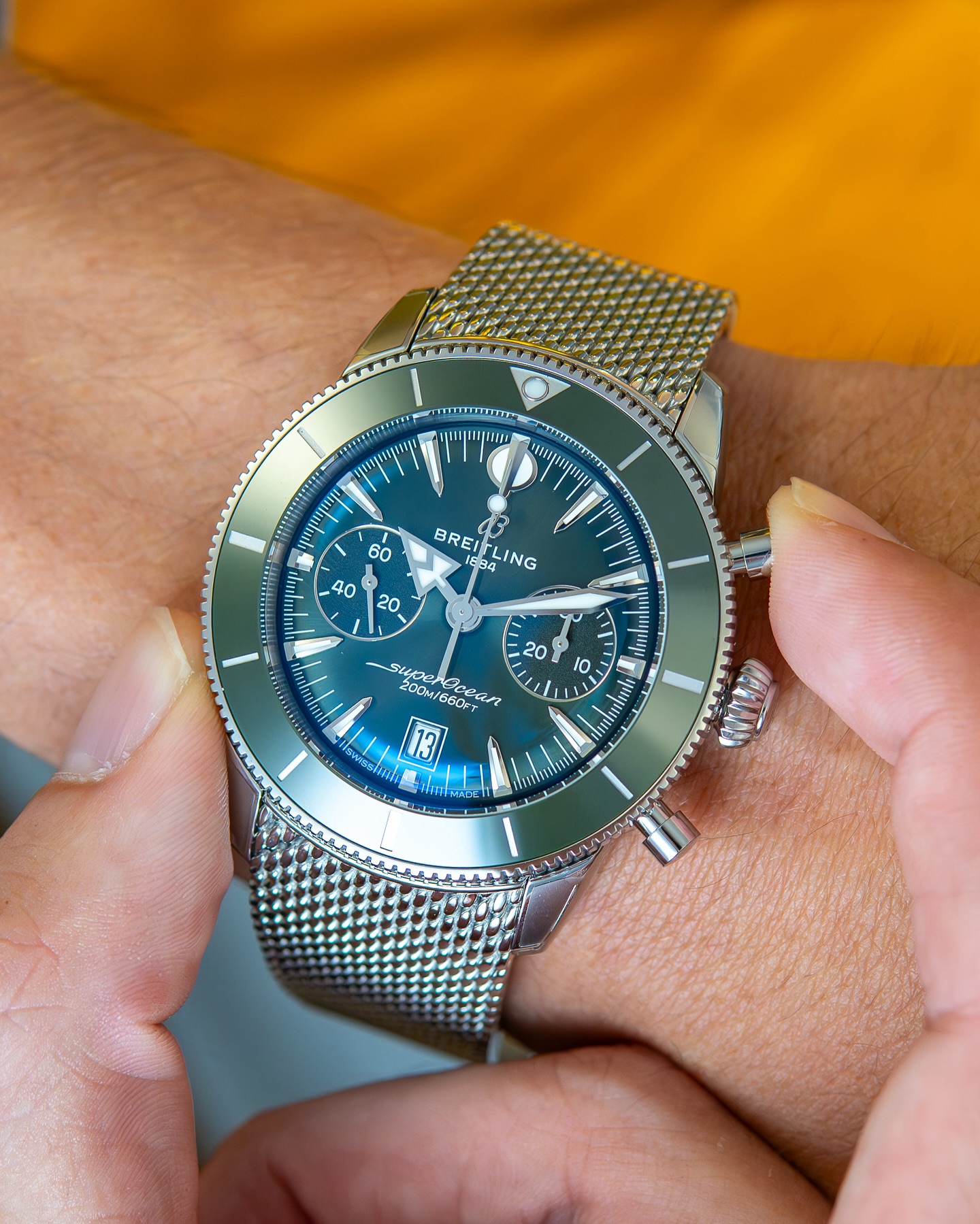 [ºê¶óÀÌÆ²¸µ] ½´ÆÛ¿À¼Ç ÇØ¸®Æ¼Áö B014 Å©·Î³ë±×·¡ÇÁ ¿ÀÅä¸Åƽ 42mm ³²¼º¿ë½Ã°è ¿ìÅןÁÙ ±×¸°´ÙÀ̾ó bre0809 - Breitling Superocean Heritage B01 Chronograph Automatic 42mm Mens Green Dial